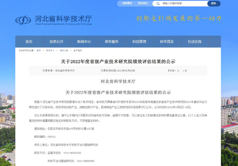 2023年2月9日,河北省科技廳發(fā)布了關(guān)于2022年度省級產(chǎn)業(yè)技術(shù)研究院績效評估結(jié)果的公示。經(jīng)評估,我公司建設(shè)運行的“河北省綠色建筑產(chǎn)業(yè)技術(shù)研究院”榮獲戰(zhàn)略性新興產(chǎn)業(yè)類研究院優(yōu)秀等次。