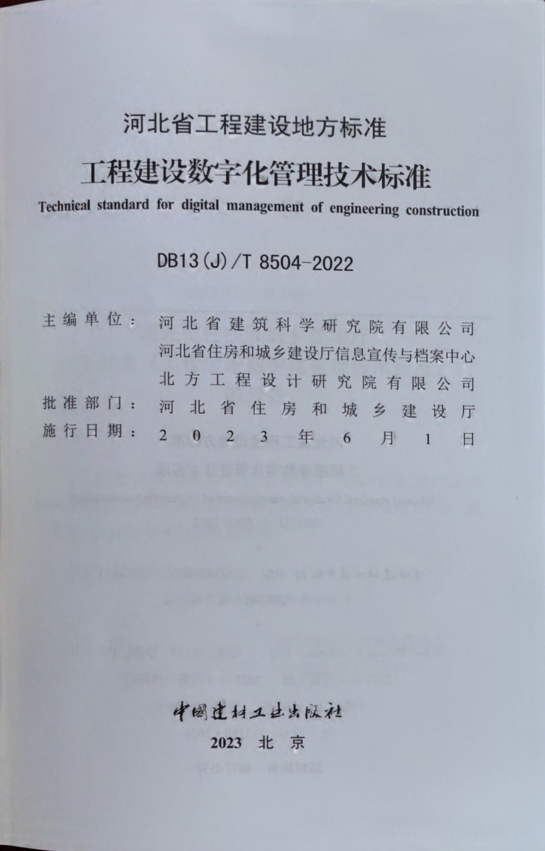 近日,由河北省建筑科學研究院有限公司、河北省住房和城鄉(xiāng)建設廳信息宣傳與檔案中心和北方工程設計研究院有限公司共同主編的《工程建設數(shù)字化管理技術(shù)標準》(DB13(J)/T8504-2022)已完成印刷,將于2023年6月1日起實施。